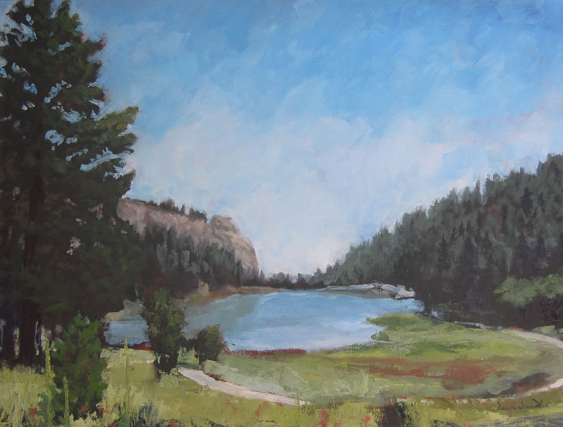 My second painting of Cathedral Rock for the book project mentioned in the previous post. This one based on a photo by my 80s Phil staff colleague, Gina Dobratz-Rezner. I wanted to do at least one painting with a vantage from higher up in the meadow, and Gina’s pic fit the bill perfectly. (She also has some glorious photos with lots of sunflowers in the foreground…May need to try to capture one of those next…). I like that this one clearly includes the road; there’s something inviting about it.